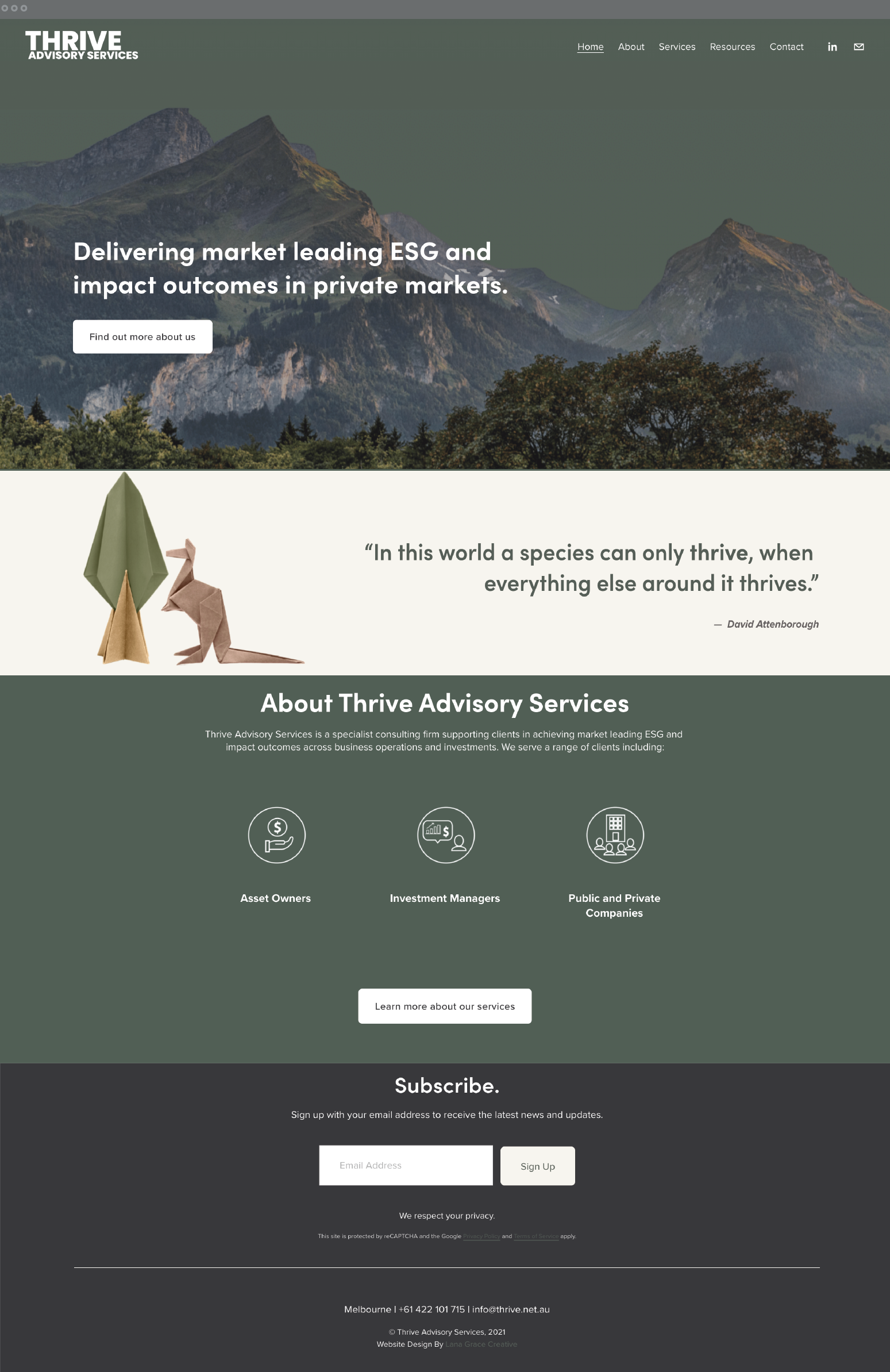 Thrive Advisory Services Squarespace Website Design - enquiry forms, contact page, blog and services information Leading Edge Landscape & Design →